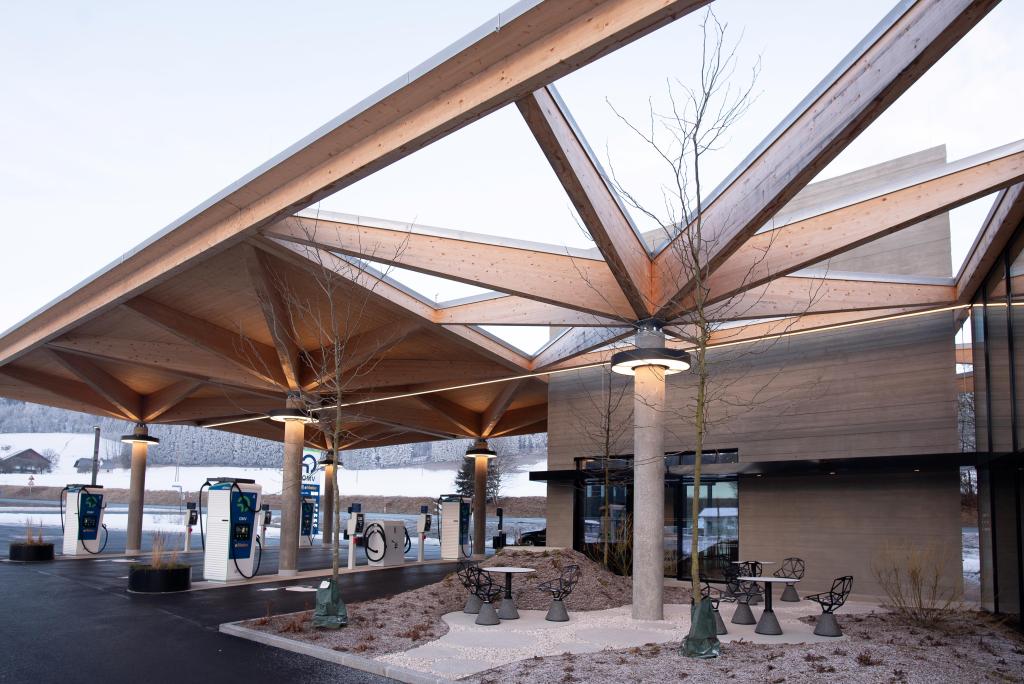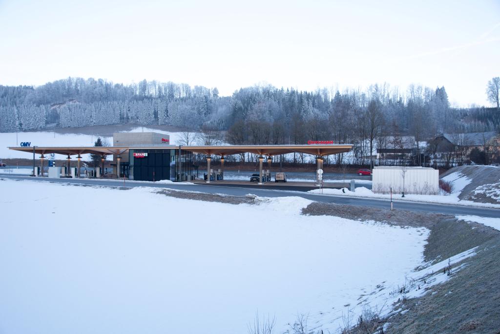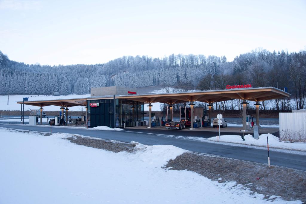 Die Firma Gutmann hat durch das Büro obermoser&partner zt gmbh eine Tankstelle in Thalgau planen lassen. ZSZ Ingenieure durften die Tragwerksplanung übernehmen.